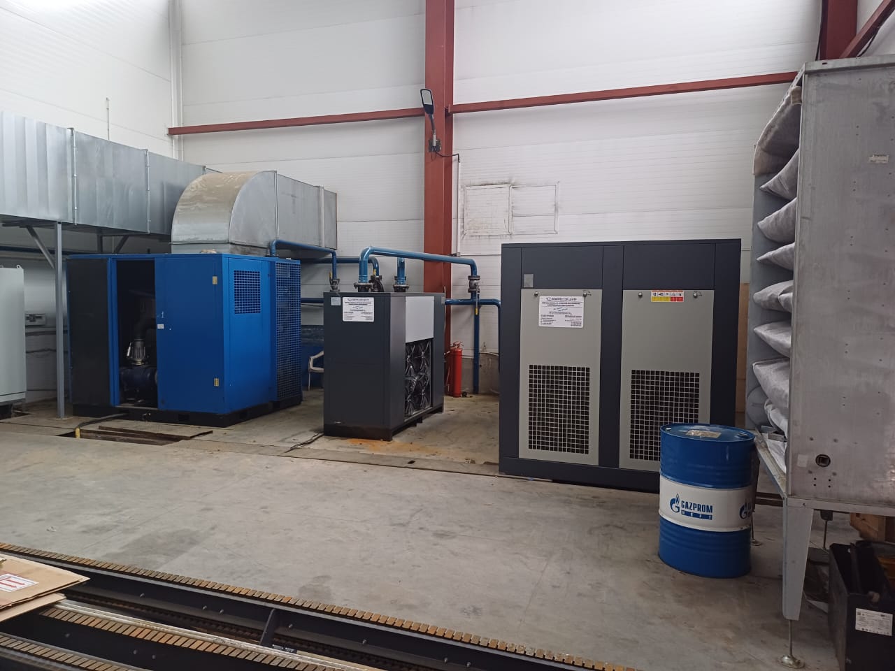 Воздуха нужно было много, закрыть потребность в сжатом воздухе всего предприятия сможет двухступенчатый винтовой компрессор "Enger" HBD-220DFE2. К нему в пневмолинию также был установлен рефрижераторный осушитель "Enger" RD-550A.