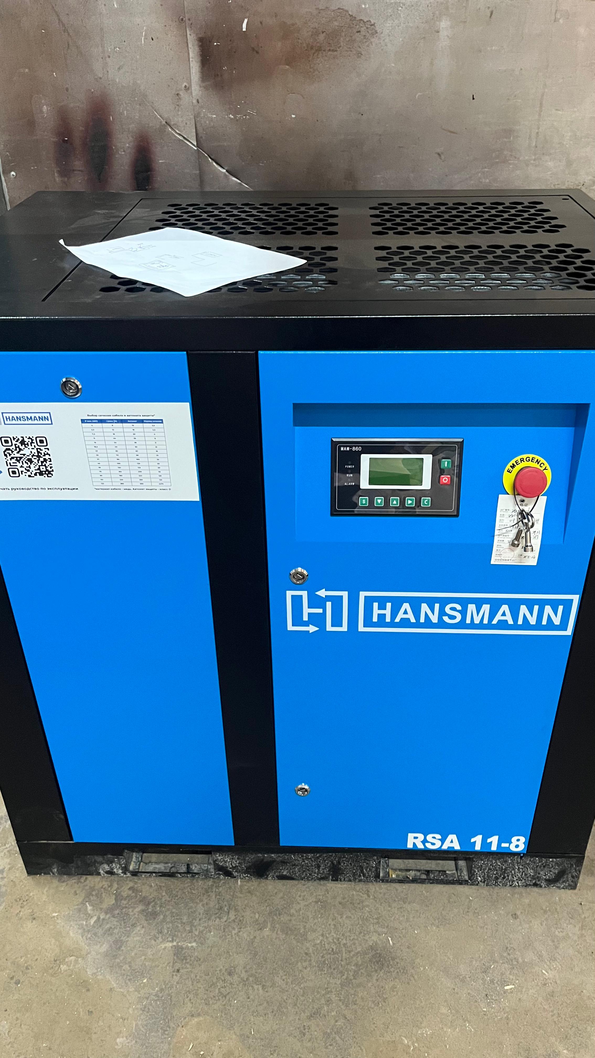 Оборудование: винтовой компрессор Hansmann RSA 11 8 бар
